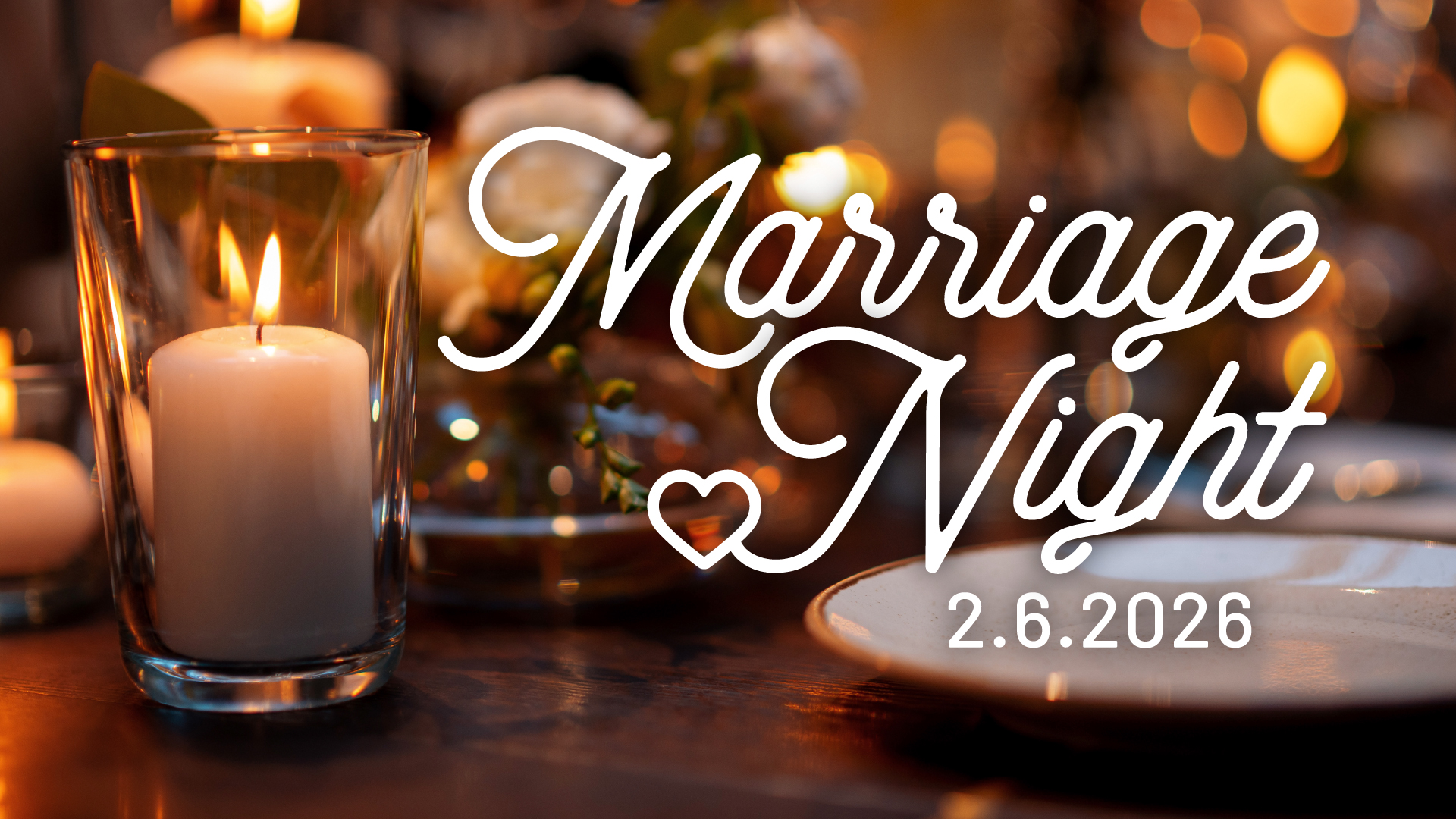 Save the date for a special Marriage Night on Friday, February 6, 2026. Join us for an encouraging and meaningful evening centered on marriage through the years—celebrating each season and strengthening your relationship for what lies ahead. The night will include a four-course dinner, childcare and guided teaching from our Marriage Ministry leaders, Jerry and Tara McColgin, designed to refresh and invest in your marriage. The cost is $25 per couple. Register by clicking the button below to let us know you would like to attend.